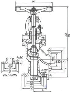 性能參數 設計與制造符合中國國家標準 1、基本結構形式:角式 2、公稱壓力:PN1.6-4.0(MPa) 3、公稱通徑:DN15-300(mm) 應用規范 遵循規范 STANDARD 設計與制造 GB12233/GB 12235 結構長度 GB 12221/JB96(長系列) 結構長度 GB78/JB79(GB、HG、SH) 壓力試驗 GB/T 13927 標志 GB 12220 供貨 GB/T12252 1.6MPa主要連接尺寸 DN in L D D1 D2 f b z-φd Do H1 H2 W 15 1/2 65/90 95 65 45 2 14 4-φ14 100 240 265 7 20 3/4 75/95 105 75 55 2 16 4-φ14 100 245 270 7.5 25 1 80/100 115 85 65 2 16 4-φ14 120 250 275 8.5 32 21/4 95/105 135 100 78 2 18 4-φ18 140 260 290 12 40 21/2 100/115 145 110 85 2 18 4-φ18 140 290 325 14 50 2 115/125 160 125 100 2 20 4-φ18 160 300 335 19 65 21/2 145 180 145 120 2 20 4-φ18 180 355 400 27 80 3 155 195 160 135 2 22 4-φ18 240 400 450 42 100 4 175 215 180 155 2 24 8-φ18 240 455 495 50 125 5 200 245 210 185 2 26 8-φ18 280 530 560 64 150 6 240/225 280 240 210 2 28 8-φ23 320 605 650 85 200 8 275 335 295 265 2 30 8-φ23 360 650 770 155 2.5MPa主要連接尺寸 DN in L D D1 D2 f b z-φd Do H1 H2 W 15 1/2 65/90 95 65 45 2 16 4-φ14 120 245 270 7.5 20 3/4 75/95 105 75 55 2 16 4-φ14 120 250 275 8.8 25 1 80/100 115 85 65 2 16 4-φ14 140 260 290 11 32 21/4 95/105 135 100 78 2 18 4-φ18 140 290 325 13 40 21/2 100/115 145 110 85 3 18 4-φ18 160 300 335 18 50 2 115/125 160 125 100 3 20 4-φ18 180 355 400 31 65 21/2 145 180 145 120 3 22 8-φ18 220 400 450 39 80 3 155 195 160 135 3 22 8-φ18 280 450 495 50 100 4 175 230 190 160 3 24 8-φ23 320 530 590 60 125 5 200 270 220 188 3 28 8-φ25 380 600 650 75 150 6 240/225 300 250 218 3 30 8-φ25 400 650 770 98 200 8 275 360 310 278 3 34 12-φ23 450 700 850 170 產品尺寸