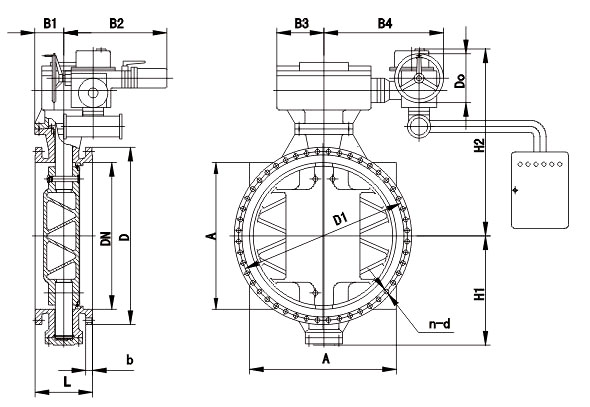 DV942X/H電動(dòng)調(diào)速電動(dòng)蝶閥外形主要外形連接尺寸 單位:mm